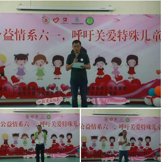 活動(dòng)首先由主辦單位廣東省客聯(lián)公益基金會(huì)鄧爭(zhēng)明理事長、廣州市青年志愿者協(xié)會(huì)張軍文和協(xié)辦單位廣州天韻社會(huì)服務(wù)中心鄒雷理事長講話,向“廣州市天韻社會(huì)服務(wù)中心”的小朋友們和辛勤勞動(dòng)的老師們表示真摯的節(jié)日問候。