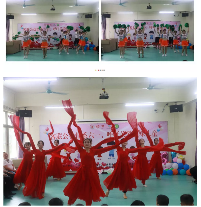 之后便是我校學(xué)生精心為小朋友們精心準(zhǔn)備了六個(gè)極具充滿青春活力的節(jié)目,整場(chǎng)表演烘托出溫馨快樂的節(jié)日氛圍。