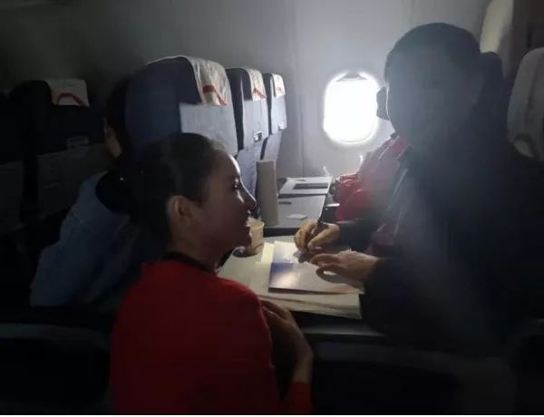 飛機(jī)上,窗外的雪景讓人動(dòng)心。窗內(nèi)的景致也讓人動(dòng)情——曾良策校助、邢斌老師、楊乾海老師、黃俊老師都利用碎片時(shí)間看書(shū)。特別讓我們感到神奇的是,飛機(jī)上一位素不相識(shí)的空姐,看到認(rèn)真閱讀的曾校助,居然非常崇拜地蹲下來(lái)求他簽字留言,成為曾校助又一個(gè)空姐粉絲。
