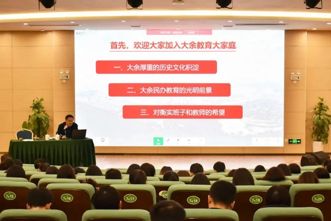 12月28日,高新·大余衡水實驗學(xué)校特邀大余縣教科體局黨委書記、局長曾凡偉到校,為全體教師生開展題為《立足教育熱土,厚植家國情懷》的專題講座。會議上,曾局長從大余的歷史文化積淀、民辦教育前景兩方面簡析,并對大余衡實的教師們寄予厚望。