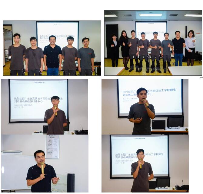 本次活動(dòng)由汽車工程系鄭大國主任統(tǒng)籌安排,盧成康、朱瑞明、簡永雄老師等帶隊(duì)。佛山南海、順德保時(shí)捷中心相關(guān)部門負(fù)責(zé)人熱情接待了我校師生一行。