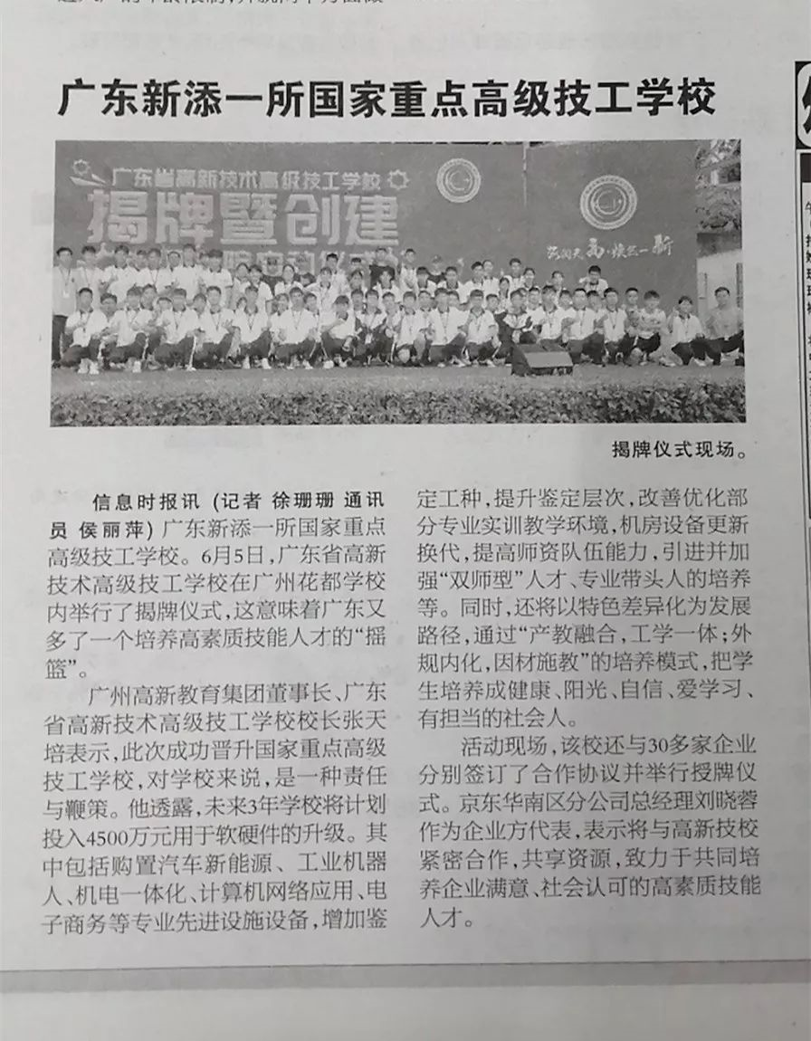 昨天 6月5日,廣東省高新技術(shù)高級(jí)技工學(xué)校舉行升高揭牌儀式(戳這里,精彩回顧),廣東省人社廳領(lǐng)導(dǎo)、評(píng)估專家、兄弟院校、校企代表及高新技校近千名師生共同參與、共同見證了廣東省又一所培養(yǎng)高素質(zhì)技能人才的“搖籃”的誕生。