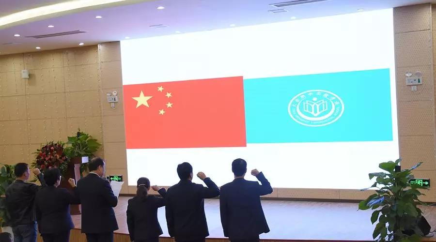 隨后王躍平校長帶領(lǐng)校級領(lǐng)導(dǎo)就職宣誓。