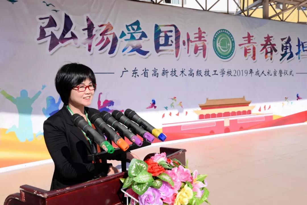 為本屆成人禮進(jìn)行開禮致辭的是廣東省高新技術(shù)高級技工學(xué)校執(zhí)行校長肖中圓,作為學(xué)校領(lǐng)導(dǎo),她對來參加成人禮的各位家長、籌備本次活動(dòng)的工作人員表示感謝,作為長者代表,她對莘莘學(xué)子寄予諄諄囑托和殷殷期待。