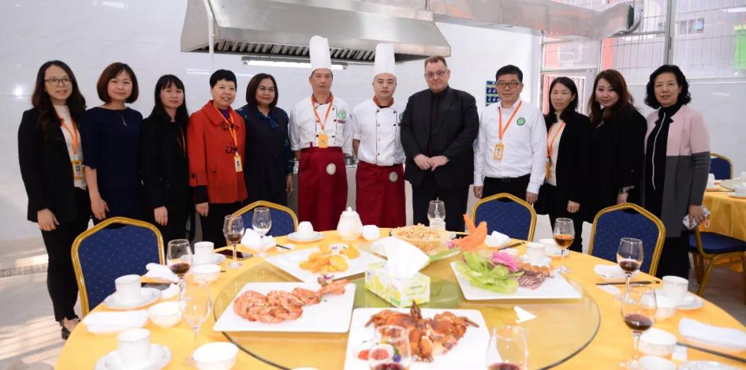 12日上午,包括澳大利亞政府貿(mào)易投資委員會商務(wù)官員周覓瓊、EHI校長Mr.Stuart、首席運營官Ms.Bubpa、亞洲區(qū)域市場經(jīng)理周敏怡、中國項目經(jīng)理歐陽云在內(nèi)的一行來賓便早早抵達我校,在我校領(lǐng)導(dǎo)及老師的陪同下參觀了烹飪專業(yè)各大實訓(xùn)室。