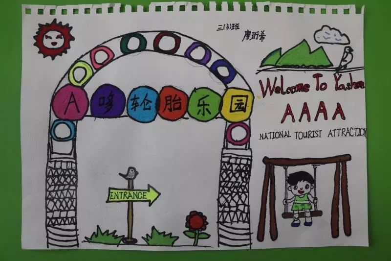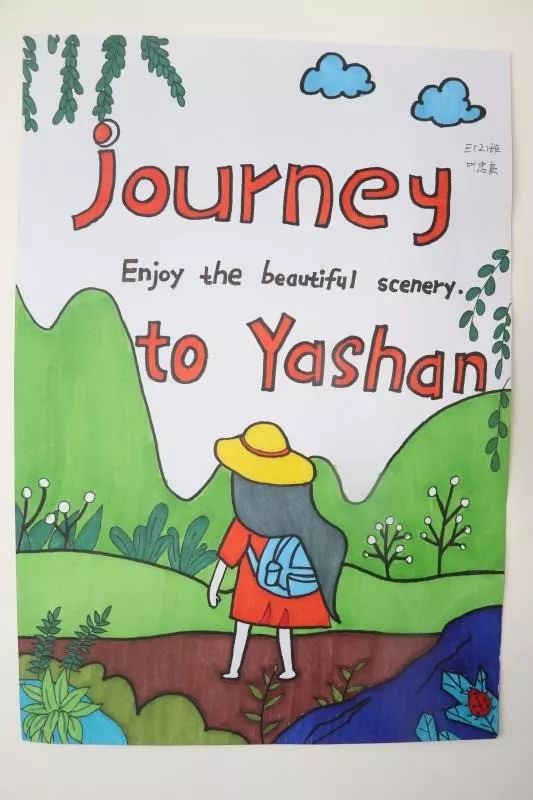 同樣的,為了準(zhǔn)備研學(xué)課程,孩子們還用英語認(rèn)真的做了丫山海報(bào)。讓我們來看看大余衡實(shí)三年級孩子們的作品吧!