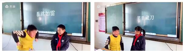 你來(lái)比劃我來(lái)猜,瞧,四(3)班的寶貝表演“羊入虎口”,可真是聲情并茂,男主角調(diào)皮地張開(kāi)大嘴,小搭檔迅速就猜出了答案,真是默契十足哇!