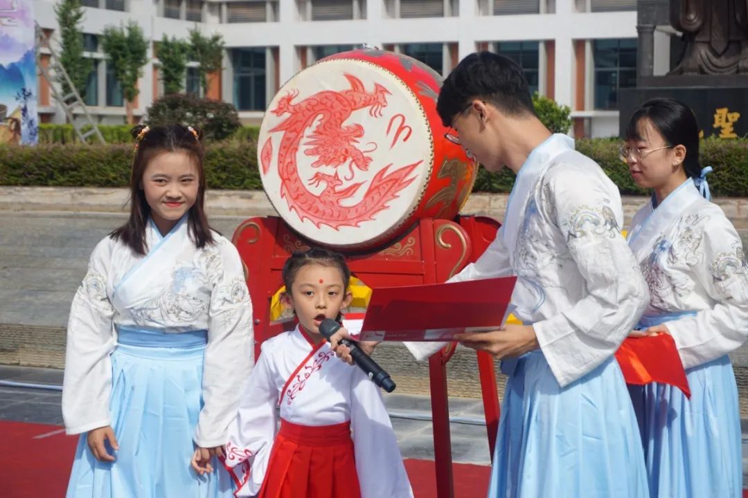 “不學(xué)禮,無以立。”尊師重道,是中國人久遠(yuǎn)的禮儀傳統(tǒng)。在悠揚的樂聲中,一年級新生們禮拜至圣先師孔子像和啟蒙老師,希望孩子們在老師的指引下?lián)碛幸活w誠摯的心、一身中華正氣、一份弘揚孔儒文化的擔(dān)當(dāng)。