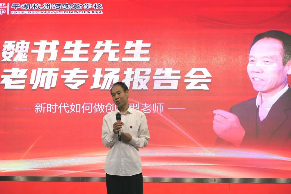 2020年9月15日上午,被喻為“穿西裝的孔子”的當(dāng)代教育家魏書生來我校為全體教職工進(jìn)行以“新時(shí)代如何做創(chuàng)新型老師”為主題的專場思想報(bào)告會(huì)。嘉興教育學(xué)院處長沈俊松先生,嘉興港區(qū)社發(fā)局文教衛(wèi)副書記顧巧明先生,平湖實(shí)驗(yàn)小學(xué)教育集團(tuán)黨委書記、總校長芮金良先生,乍浦高級中學(xué)黨總支書記、校長曹躍平先生,平湖實(shí)驗(yàn)小學(xué)教育集團(tuán)副總校長、毓秀小學(xué)校長湯麗英女士,平湖杭州灣實(shí)驗(yàn)學(xué)校理事長肖家興博士,北大親子教育專家孫一鳴老師,海寧市南苑中學(xué)、嘉興市城南中學(xué)、嘉興市運(yùn)河實(shí)驗(yàn)學(xué)校、嘉興市城南小學(xué)等學(xué)校,以及平湖市、港區(qū)兄弟學(xué)校的老師們紛紛慕名而來,聆聽長者教誨。