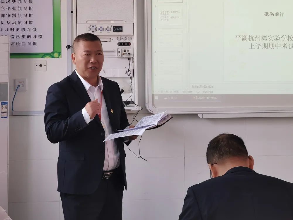 伴隨著初冬的腳步,11月8日上午,我校九年級全體教師在培英樓503教室召開了期中考試質(zhì)量分析會。平湖杭州灣實驗學(xué)校理事長肖家興博士、三方合作辦學(xué)總指揮曹躍平校長及學(xué)校初高中部分行政領(lǐng)導(dǎo)參加了此次會議。