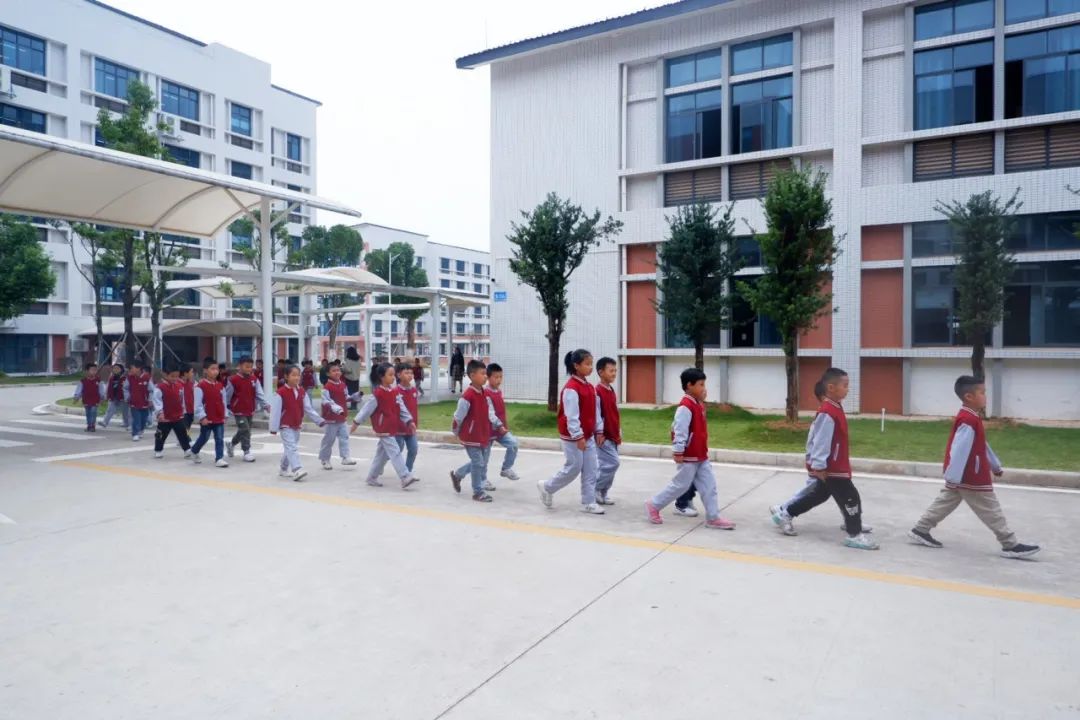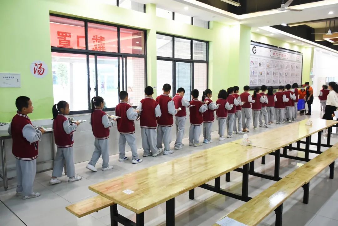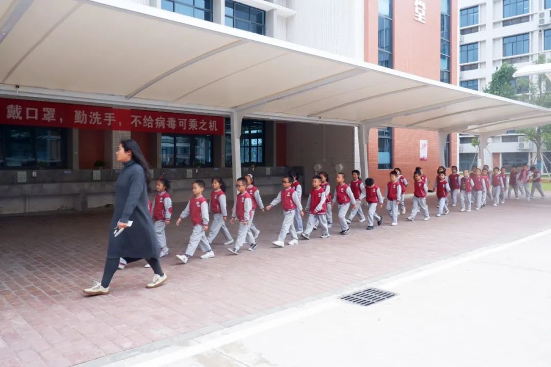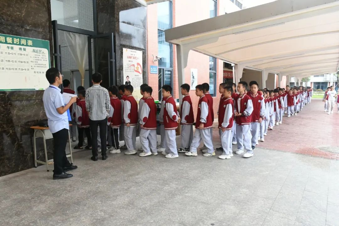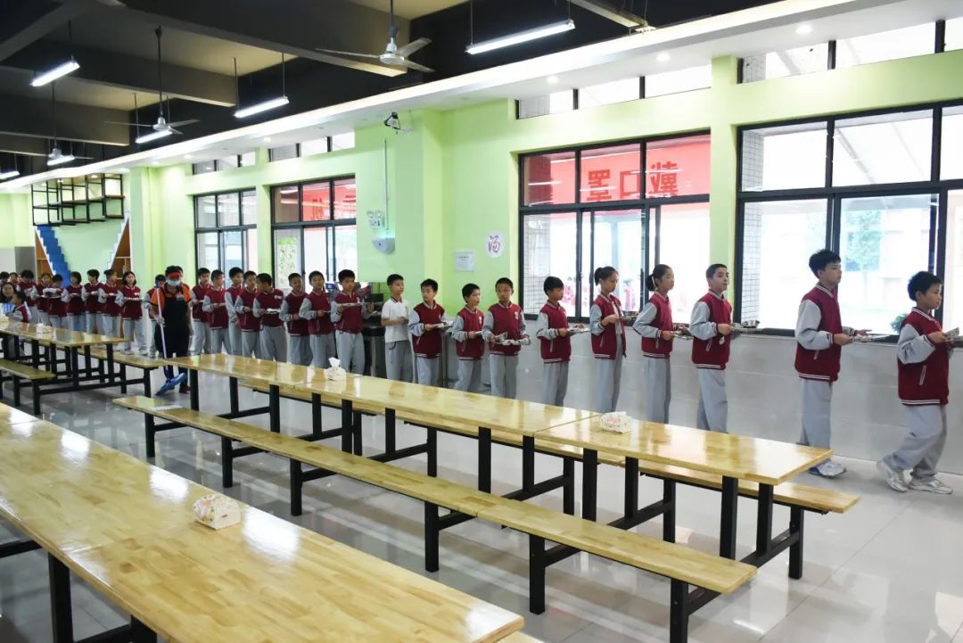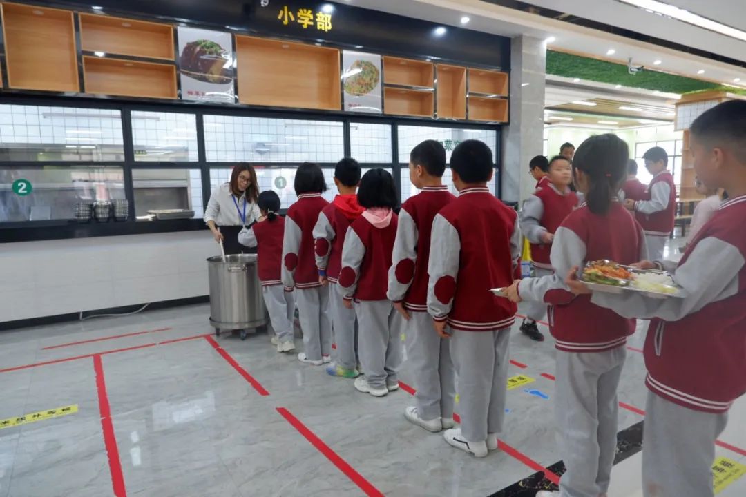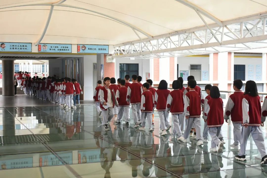 每到時(shí)間,學(xué)生自覺排成整齊的隊(duì)伍,按照規(guī)定的路線向餐廳出發(fā)!這整齊的路隊(duì)就是他們的招牌,這有力的步伐就是他們的精神面貌!