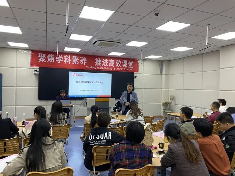 中午,我們有幸請到嘉興市學(xué)科帶頭人、嘉興市南湖區(qū)教研員朱文平專家為我們做了題為《促進學(xué)習(xí)真實發(fā)生的課堂教學(xué)》微型報告。朱老師給我們指出,教學(xué)改革的核心是“改變教與學(xué)的關(guān)系”。“教是為了不教,教為了學(xué);少教多學(xué),變教為學(xué)”是教學(xué)改革的方向,我們應(yīng)當(dāng)基于學(xué)科特征、學(xué)習(xí)內(nèi)容特征、學(xué)生學(xué)習(xí)特征選擇合適的學(xué)教方式,使學(xué)習(xí)方式多元化,從而學(xué)習(xí)行為多樣化,學(xué)生才能夠更好地獲得知識。