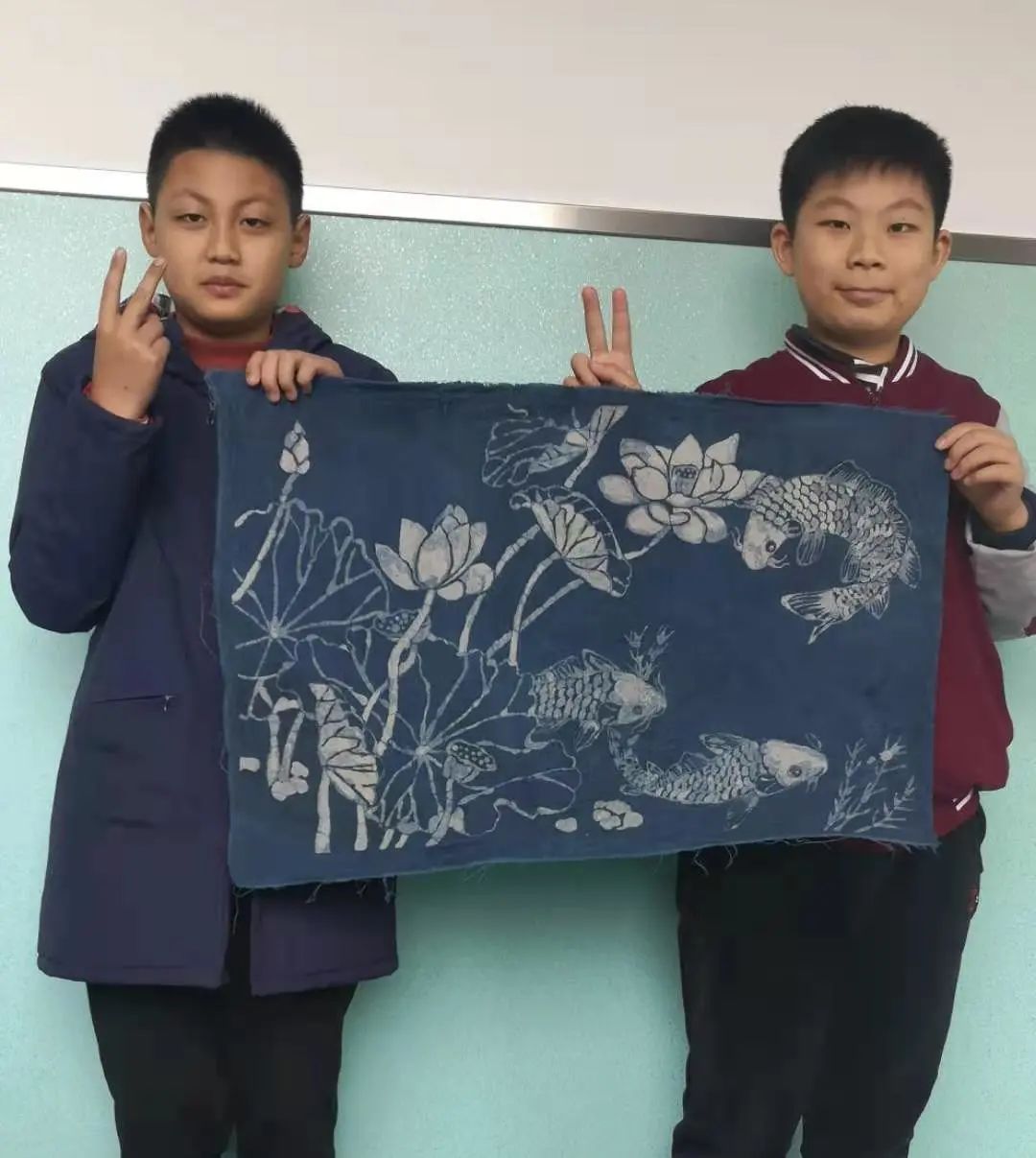 蠟染是用蠟刀蘸熔蠟繪花于布后以藍靛浸染,既染去蠟,布面就呈現(xiàn)出藍底白花或白底藍花的多種圖案。