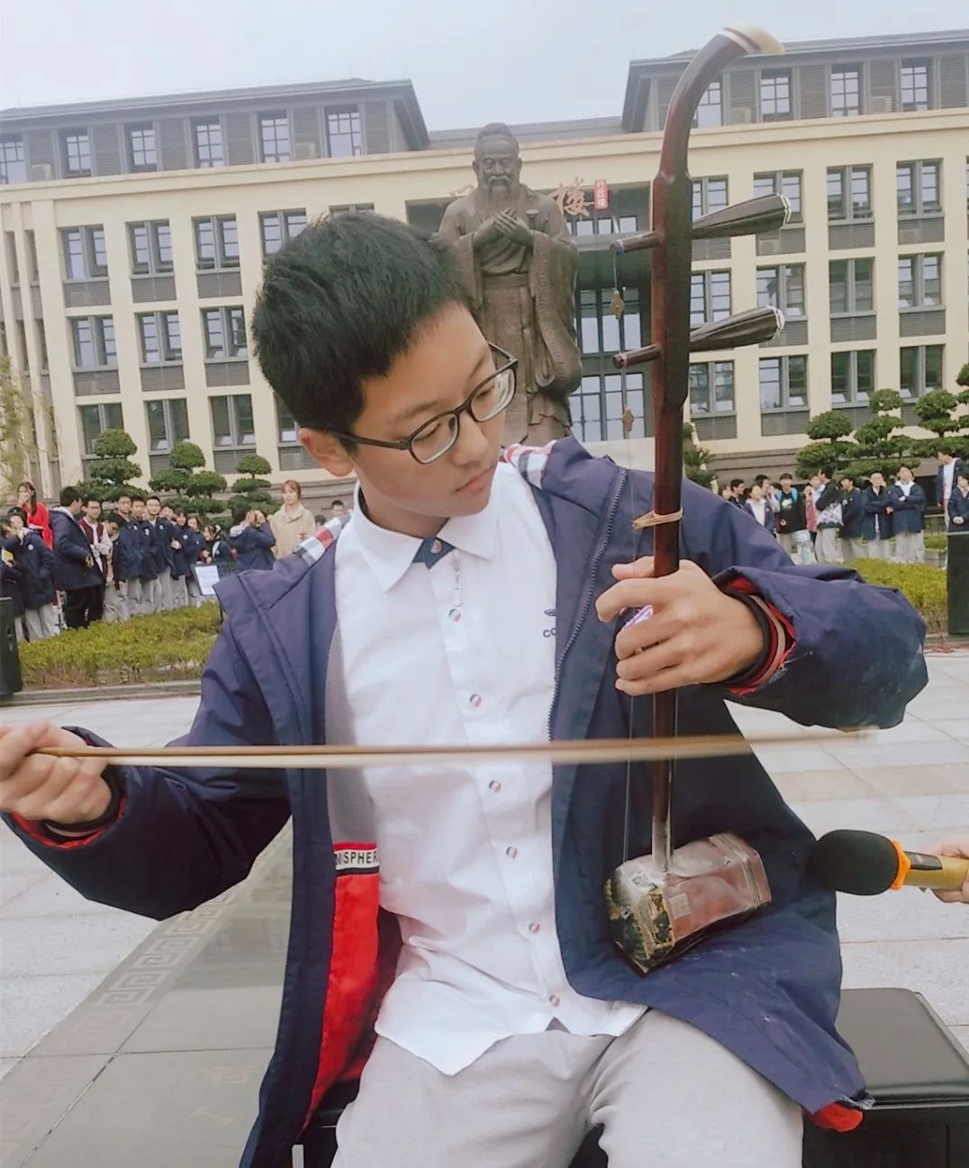 揚琴、吉他、鋼琴、長號等樂器輪番上場,街舞、說唱、中國舞、朗誦等表演方式層出不窮?;馃岬墓?jié)奏,勁爆的音樂,悠揚的樂聲在孔子廣場交織,古韻與活力相匯,構成一篇和諧的樂章。