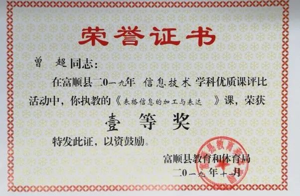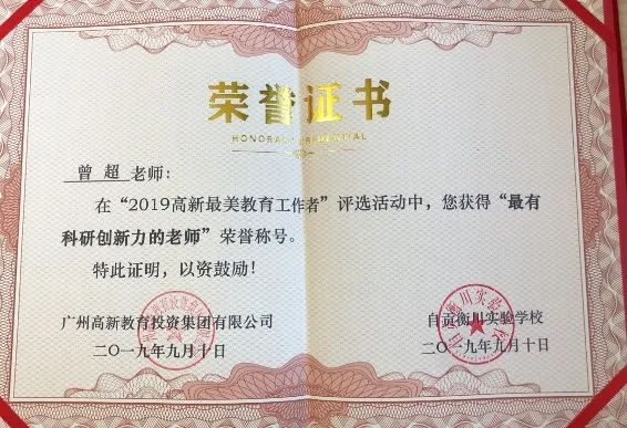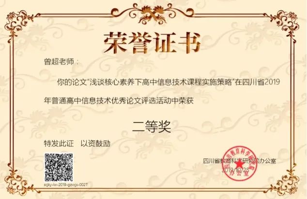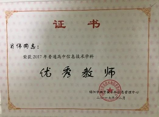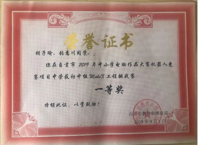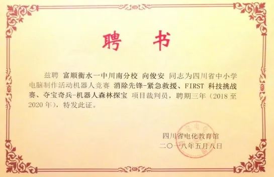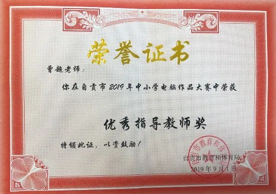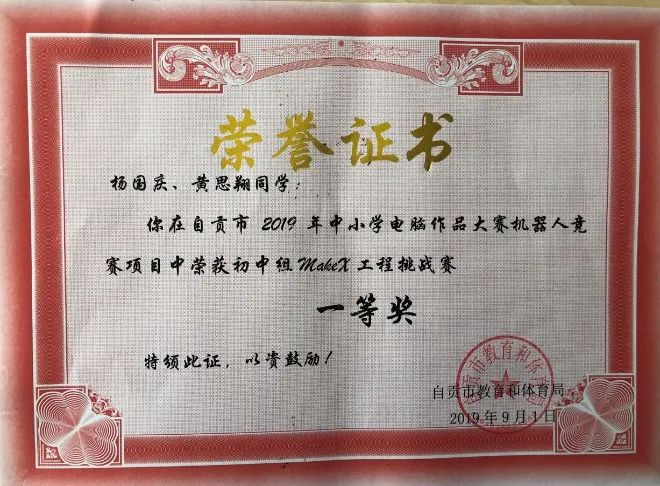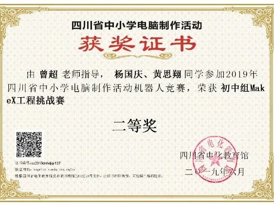 學(xué)生獲2019年四川省中小學(xué)電腦制作活動(dòng)機(jī)器人競賽省二等獎(jiǎng)1項(xiàng)、三等獎(jiǎng)2項(xiàng)。