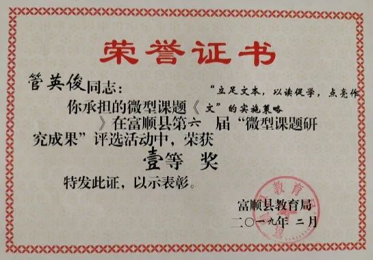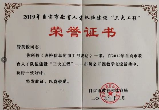管英?。褐袑W(xué)一級教師,市骨干教師、市優(yōu)秀教育工作者,長期擔(dān)任市縣信息技術(shù)學(xué)科教學(xué)比賽評委。