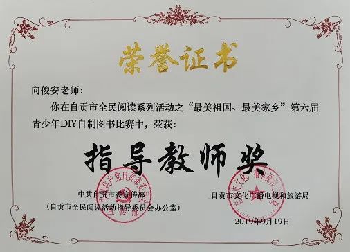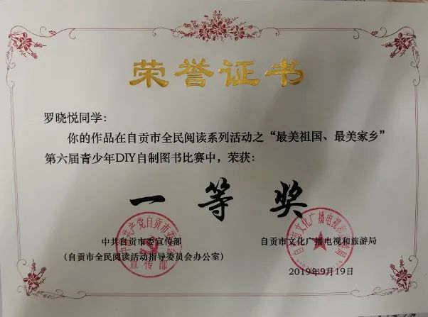學(xué)生獲自貢市第六屆青少年DIY 自制圖書比賽一等獎(jiǎng)。