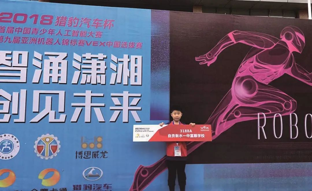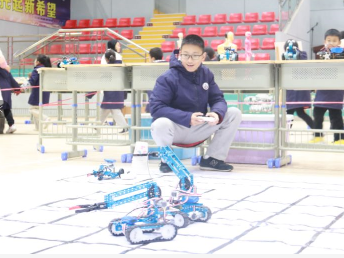 學(xué)生在2019年中小學(xué)電腦作品大賽機(jī)器人競賽中獲初中組make X工程挑戰(zhàn)賽一等獎(jiǎng)。