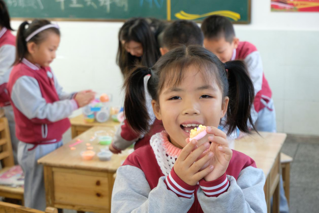 在兩年的支教時(shí)間里,面對(duì)條件的限制,我想盡辦法讓孩子們的生活更加豐富多彩。美術(shù)課上,帶著孩子們一起裝扮教室;體育課上,尋找有趣的活動(dòng)和學(xué)生一起玩耍;大課間時(shí),和孩子們一起跳舞;到了元旦,我買來(lái)蛋糕和孩子們一起慶祝;遇到兒童節(jié),我和孩子們一起排練節(jié)目......我努力將儀式感帶給孩子,并在有限的時(shí)空里,尋找更多的樂(lè)趣。