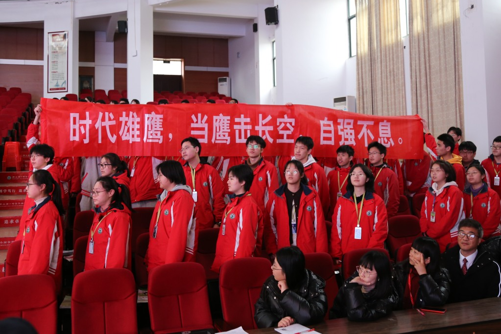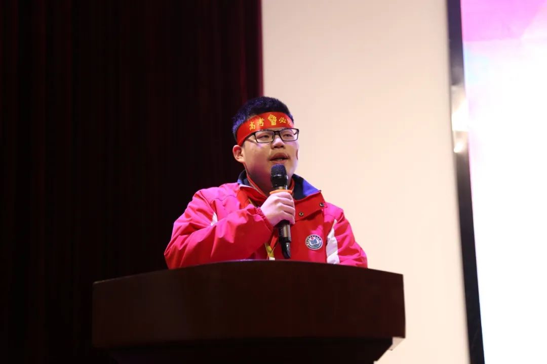 大會第四項,高三1班蔡澄寬同學(xué)代表高三全體同學(xué)發(fā)言,他向所有正值青春年華的高三學(xué)子發(fā)起號召:自信拼搏,不退縮,不彷徨,努力搏長空,舉目望蒼穹,圓夢火紅六月。