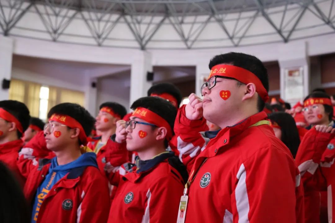 大會的最后,在領(lǐng)誓人高三2班王嘉陽同學(xué)的帶領(lǐng)下,全體高三學(xué)子用洪亮的聲音喊出對未來的雄心壯志和錚錚誓言。十載寒窗,百天苦練,何人健步登金榜?一腔熱血,萬丈豪情,我輩英才奪桂冠!