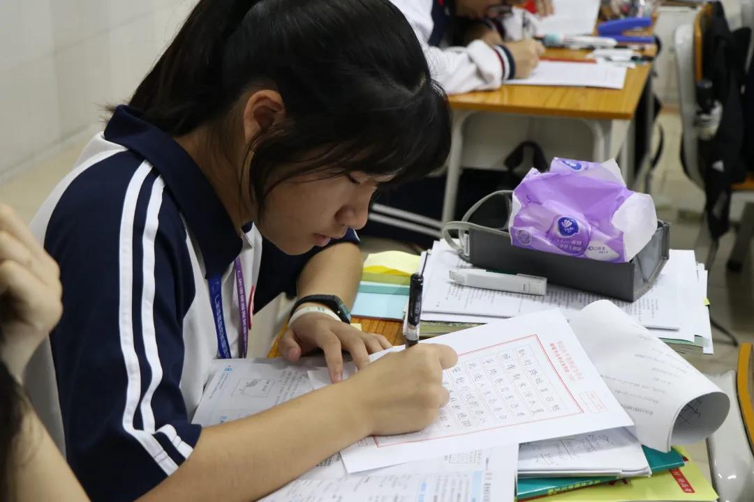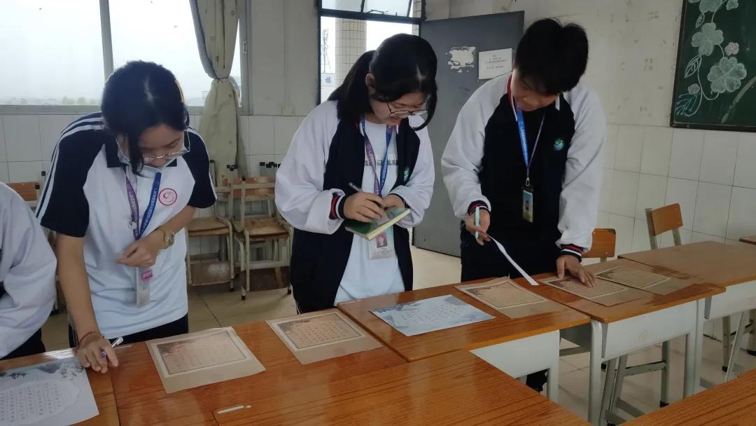 本次初賽除了語文課組老師作為評委外,還特邀了上一屆獲硬筆書法比賽第一名的韋家麗(2班)、張寶兒(4班)、牟星宇(2班)、何子嫻(3班)、于珊珊(2班)、劉語晴(4班)、王思淇(3班)、楊欣冉(3班)等8位學生作為小評委。初賽以班級為單位進行,每位同學都有資格參賽,賽后經(jīng)評委選出入圍選手參與決賽。