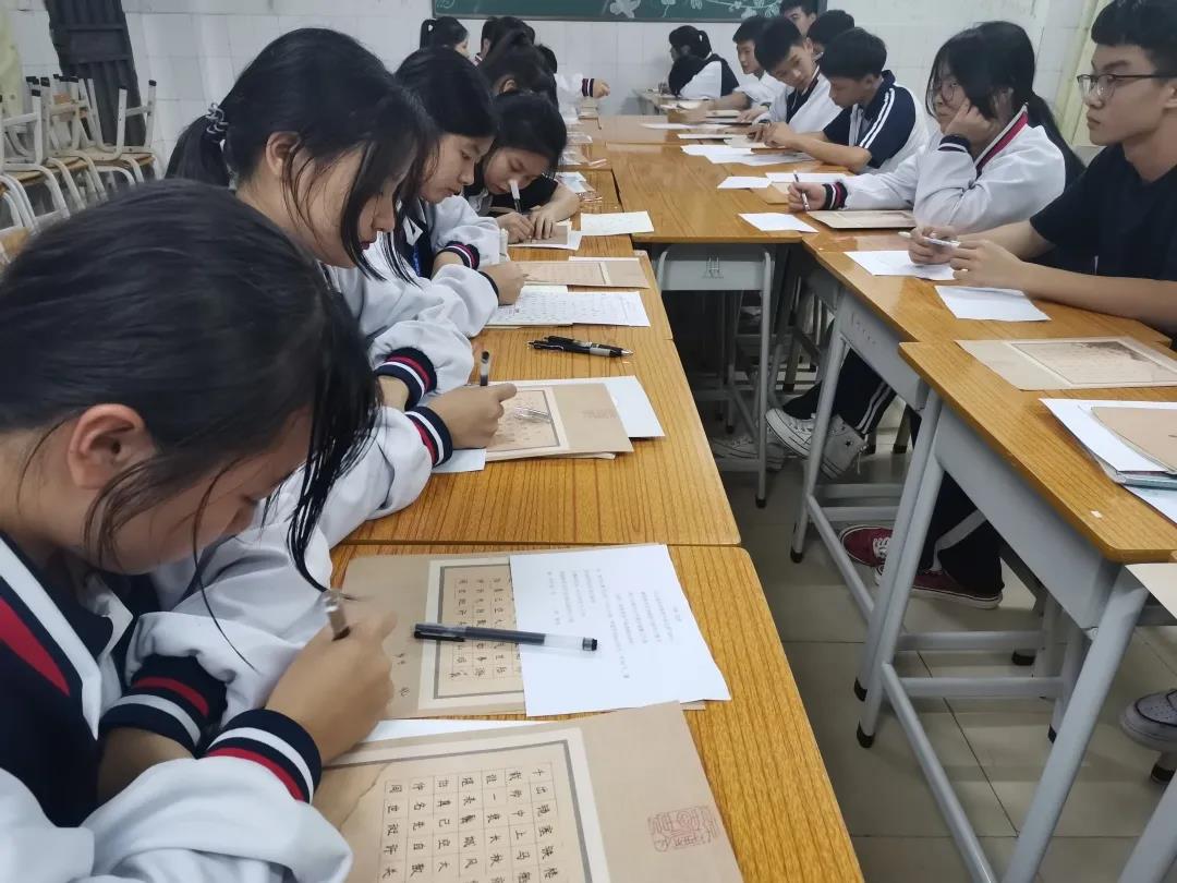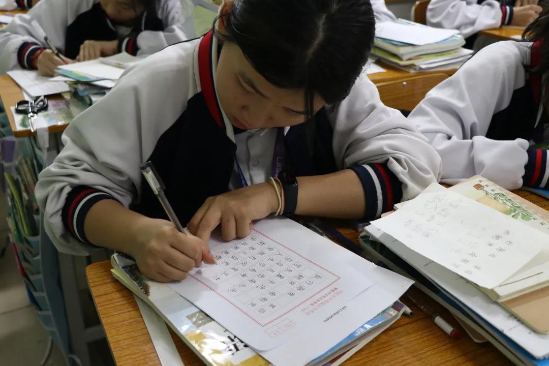在初賽環(huán)節(jié),班級是練場,也是賽場。同學們在接到比賽通知后,認真練字,摩拳擦掌。
